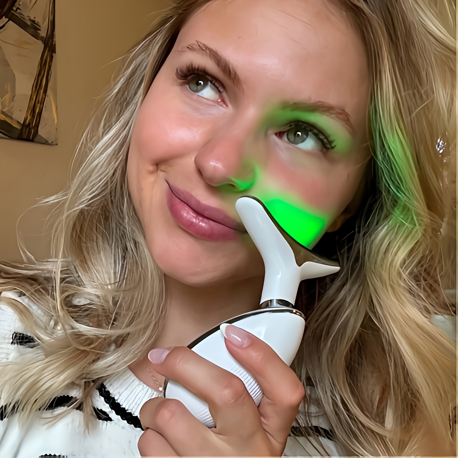 La lumière verte cible les déséquilibres du teint et les rougeurs, apportant une action apaisante et uniformisante pour les peaux sensibles ou marquées par des taches.